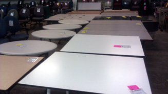 Choose from hundreds of conference, training, task, coffee and end tables in just about any shape, size and finish you can imagine.  Our warehouse is just loaded with tables that are ready to give your office that professional look you want at a very affordable price.